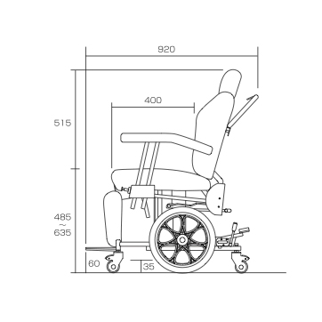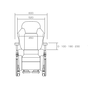 ベッド、他の車いすなどの高さに合わせて、自由に調節可能昇降機構。アームサポートは座面高まで下がり、移乗でのブリッジとなり快適移乗を実現。6輪設計は椅子の重さを感じさせない小回りと快適走行を実現。