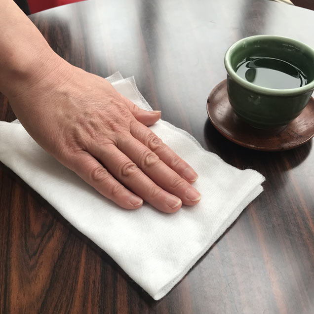 配膳テーブル拭き等として使用。汚れが目立ってきたらディスポ。