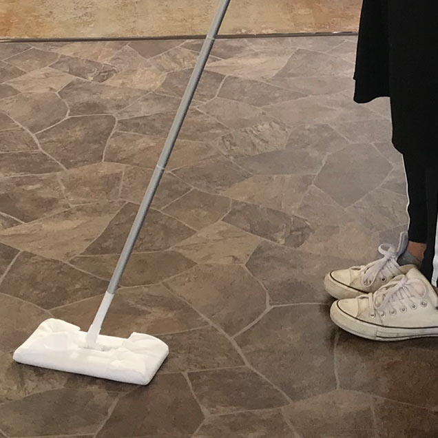 清掃モップに合わせて取替シートに。アルコールなど噴霧可。